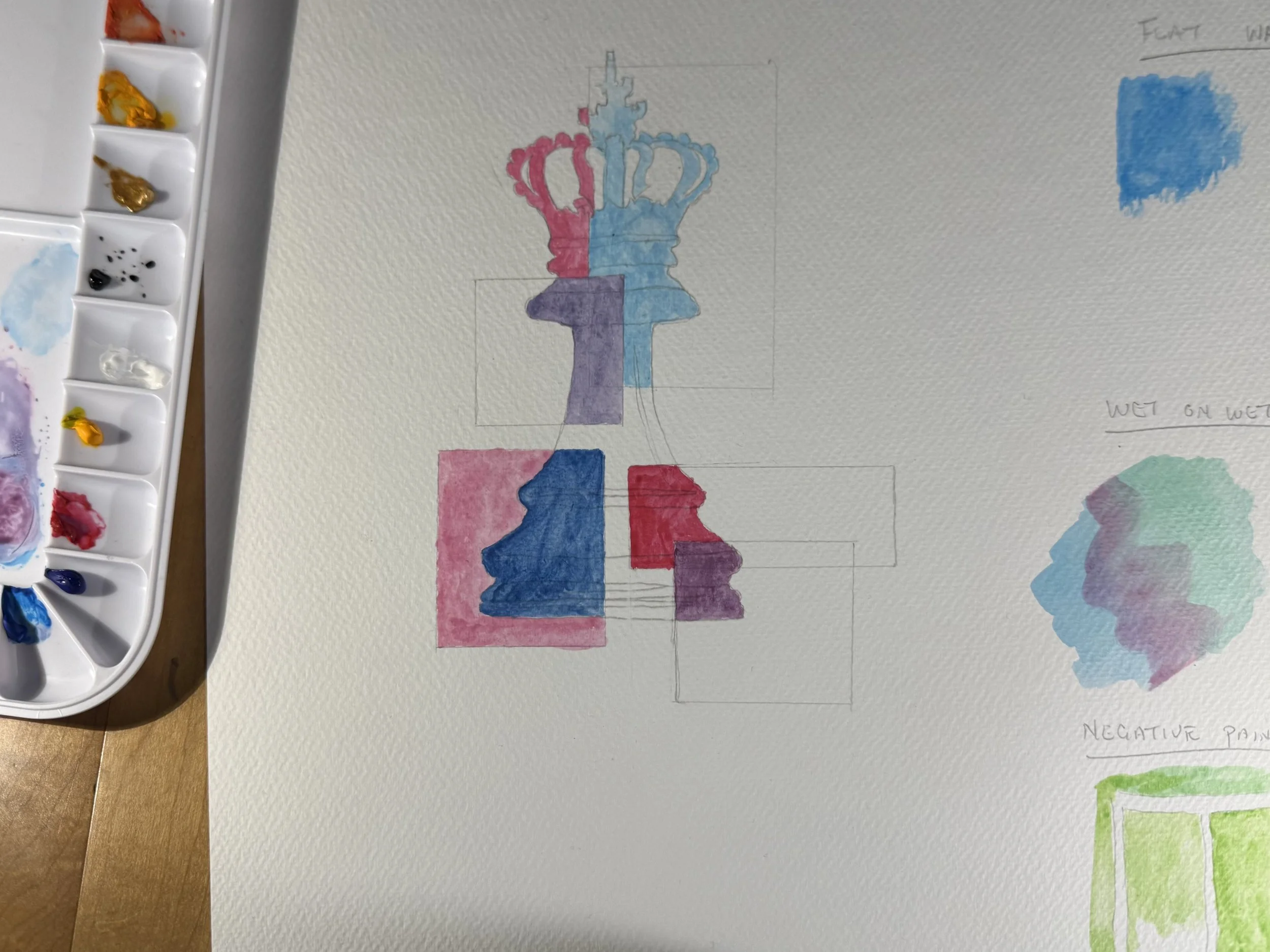 The next stage was learning how color worked on my own paper that I intended to paint my bigger picture on.
